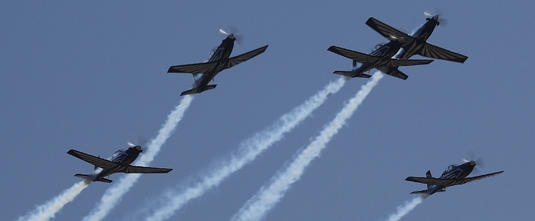 Team 80 - The Silver Falcons in their Pilatus PC7 Mark 2's piloted by Mark Gentles, James Wilcox, Omphile Mutloane and Wendy Badenhorst displayed their premier formation and aerobatic manoeuvres with such precision skill. Later in the afternoon the Silver Falcons performed the 'missing man formation' in honour of Michel Leusch.